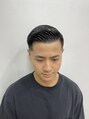 ビジネスもいけるスキンフェードスタイル。ジェル多めで2種類のコームを使うとメリハリが出ます。