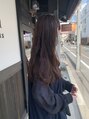 海外の女の子くせ毛風スタイル。にごりのないナチュラルで落ち着いたブラウン。透明感もあるので重く見えない。柔らかい髪質に見せてくれます。黄色く退色しやすい方、特におすすめです!