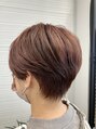 襟足をスッキリさせたハンサムショートです。ハイライトを入れてからピンク系のカラーをすることで、表面に柔らかい質感を与え肌をキレイに見せる効果があります。