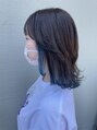 セミロングインナーカラー/ブルーアッシュ/イヤリングカラー
