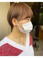 以前入れたハイライトを活かしたベージュカラーと顔まわりのまるみがかわいいコンパクトショート!小顔効果抜群です。