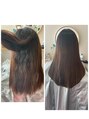 こちらのお客様は、毛先にブリーチが残っていました。毛先はしっかり、保護し栄養分を入れて仕上げることで、縮毛矯正をかけても、ダメージなく仕上げることができました。