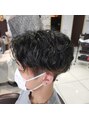 センターパートのメンズスパイラルパーマです。最初は少し強めが丁度いいですよ!