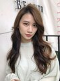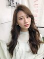 重めのロングで大人っぽく上品なスタイル。サイドに繋がる長めの前髪でバランスの良い小顔ヘアに。カラーは透明感と柔らかさのあるベージュ系カラーが相性◎
