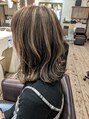 表面はコントラストハイライトを入れて全体に細かいハイライトをいれてミルクティーベージュ!32mmのコテで毛先は外ハネを意識してリバースに一回転半巻いてオイル仕上げ◎