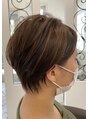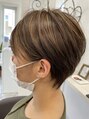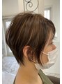 ミディアムボブからのバッサリショート♪全体をアッシュ系でカラーリングしプラス全体にハイライト♪
