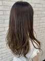 根本は暗めに 毛先なるにつれて明るくなるように明度差をつけて塗り分けてあるグラデーションカラーです。グラデーションに仕上げることで自然に毛先を軽く見せることができるので 重めなスタイルでも 毛先を少し巻くだけで 軽さと動きがあり印象が変わります