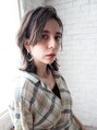 甘過ぎない大人っぽい外はねのミディアムスタイルです。全体的に切りっぱなしボブにカットし、表面にレイヤーを入れくびれができるスタイルに。バングは頬骨のあたりで流しやすいようにカットし大人っぽい印象に。[高崎/高崎駅]