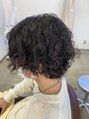 ミディアムパーマスタイルです。大きめ強めのリッジを狙ったツイストウェーブが主役です。ミディアムベースにセンターパートで抜けをイン。