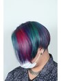青、紫、ピンク、ターコイズの多色完全ランダムメッシュ!アシメカットで、より個性派に!