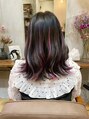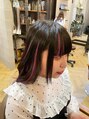 シールエクステ20枚でハイライトスタイルにしています。ラベンダーとペールパープルのエクステを使って表面に見えやすいようにつけています。