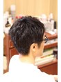 サイドは6ミリのツーブロック。カラーは6トーンのマット系。えり足は刈り上げないけどスッキリと。涼しげな感じに眉も整えて清潔感をだしてます