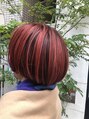 ワインレッドハイトーンショートレイヤーブリーチカラー渋谷R14