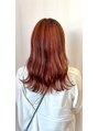 オレンジハイライトカラー!根本はダークトーンのカラーで染めそれより先はハイトーンオレンジで染めました!