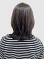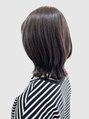 肩につくぐらいの長さで切っているので、自然と外ハネになります。乾かすだけでまとまるヘアスタイルです。