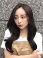 大人の韓国風ヨシンモリロングヘア。重めベースのカットでツヤとまとまりを出し、大人の上品な質感に。全体をリバースに巻いて韓国風大人ロングの完成。
