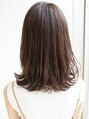 ひし形シルエットのミディアムヘア☆輪郭や表情を美しく小顔に魅せる前髪の作り方がポイント。カラーは柔らかいベージュカラーで透明感ある仕上がりに!【ブックマークする】でカウンセリング時にご利用ください。