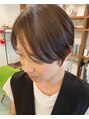 褪色して明るくなりやすい髪に、馴染み易い明るさのローライトを、施した大人のショートスタイル。手櫛で決まるのでスタイリングも簡単です。