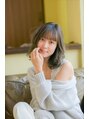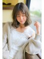 柔らかい透明感のある、くすみグレージュのミディアムスタイル。ローレイヤーで毛先に動きが出るようにカット。