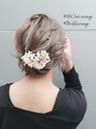 明るめのトーンを生かした立体感のあるアップスタイル!プリザーブドフラワーの飾りもよく合います♪