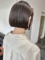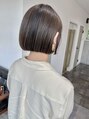 ぱつっとしたラインのコンパクトなボブに、柔らかい少し暗めのグレージュカラー。弱めに1ブリーチしてます。※ブリーチの必要の有無はご相談ください。