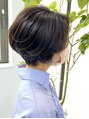 前髪からサイドへの毛流れが綺麗な大人ショート。ネープを首に沿うようにシュッとしめてメリハリを。