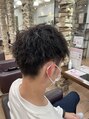 カットはツーブロックスタイルで全体的に短くスッキリさせていただき、パーマは強すぎないツイストパーマをあてさせていただきました。