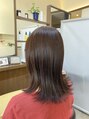 【気に入って頂いたスタイルは、ブックマークをしてご提示ください】自然に収まるようにカットしていますので、ヘアオイルをつけるだけの簡単スタイリング♪襟足をキレイにみせる前下りボブです☆