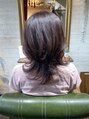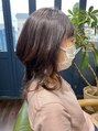 毛先のカールを活かしたレイヤースタイル。イルミナカラーの中でも艶バッチリカラーのアンバー使用で落ち着いた雰囲気に。