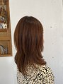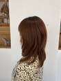 カラーはナチュラルブラウンの10トーンです。カットは鎖骨下のミィディアムレイヤーで、顔周りも顎下からレイヤーが入っています。