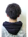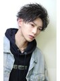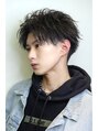 かきあげた前髪と、サイドのリバース感、ハネ感がカッコいい!ショートウルフベースに、サイドは2ブロックを。MIXパーマでランダムな束感とボリューム感でスタイリングをよら簡単に!カラーは6トーンのブルーブラック