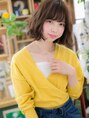 【スタイルは★ブックマーク★が便利】斜めバングで目力強調。サイドの前下がりラインで輪郭カバーして小顔見せ。くせ毛風カール&耳かけでガーリーな印象。大人かわいい要素が詰まった愛されフェミニンボブです♪(メイク担当:COVERHAIRGROUP 中田)