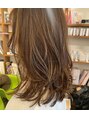 細いハイライトを表面に施して、色味強調と抜け感があるヌーディベージュカラー。顔周りに軽い毛束感を作ってシースルー感を出しました。アレンジしやすく夏のまとめ髪も決まります。