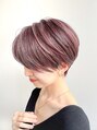 大人前下がりショート。頭の丸みが綺麗に見え、襟足の髪もやや短め、耳にかけれる、少し斜めに流せる前髪、女性らしさ残るオススメスタイル!ハイライトカラーで、透明感あるカラーになります。ワックスを揉み込むだけの、簡単スタイリングです。