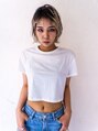 ラフに動かすだけで可愛いカットと、動きのあるデザインに見えるよう根本残しの、ホワイトカラーに。