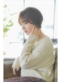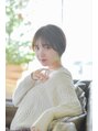 前下がりの綺麗なシルエットのショートスタイル。今どきなコンパクトショートでスタイリングも簡単。大人可愛いショートです。
