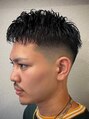 ba600アッシュブラック刈り上げ短髪パーマ束感バーバースタイル