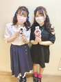 仲良し二人組の 色違い双子ヘア!! 後ろはもちろん、前から見た時もしっかり伝わるふわっとさで 可愛さアップ!! 編み込みのところの パールやリボンがポイントです♪ 2人ともお似合いすぎました\(^^)/