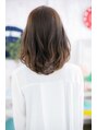 ダークトーンとニュアンスカールで、落ち着いた大人っぽさとフェミニンさを醸した、大人リラクシーミディ。透け感あるフリンジバングで可愛らしさをプラス。カッコよく決めたい方は、かきあげバングをラフに立ち上げたり、センターパートでクールにするとGOOD