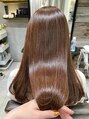 少しクセが気になるけど、透明感があるカラーがしたい人に向けた提案他店とは違うストレートヘア+透明感カラーを手に入れられます。縮毛矯正ではなく、ツヤツヤでふわっと自然なストレートヘアになれる薬剤と技術です。髪の状態によってブリーチが必要です。