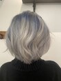 前髪無しのツーブロックボブにブリーチ4回以上してからブルーシルバーを入れて透明感を出しました。1日では仕上がらないカラーなので、担当者とご相談下さい。