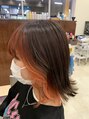切りっぱなしボブでフェイスフレーミングをオレンジ色に。
