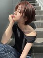 大人かわいい前下りショート、束感ショートはシースルーバング、シャープに切ったライン、襟足をしめてスッキリ見せたり、毛先の質感と、メリハリを効かせ絶妙なバランスに!カラーは赤みの強いダスティーピンクでつや感、束感をプラスしヘルシースタイルに!