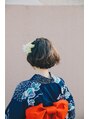季節問わず人気のある無造作なゆるふわボブ。モデルさんは浴衣を着ていますが、髪飾りなどで雰囲気も変わるので洋服でも可愛いです♪アップバングのアレンジは夏の定番です。