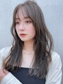 胸上のセミロングヘア。カラーはブリーチなしのオリーブグレージュ。顔まわりと表面にレイヤーが入っているので、軽く巻くだけで動きが出ます。