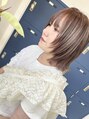 ベースカットはボブベースで切り、顔まわりのみです。ラフに乾かしてストレートアイロンで外ハネにしたスタイルです全体の量はほとんど変えていないのでは古くさい印象にはなりません。カラーは7トーンパールベージュカラーでツヤ感と透明感をプラスしました
