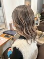 ベースカットはボブベースで切り、顔まわりのみです。ラフに乾かしてストレートアイロンで外ハネにしたスタイルです全体の量はほとんど変えていないのでは古くさい印象にはなりません。カラーは7トーンパールベージュカラーでツヤ感と透明感をプラスしました