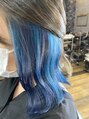 インナーカラーに薄めのブルーと濃いブルーの2色を使いミックスしています!普通のインナーカラーに飽きた方にオススメです☆