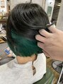 通常のアルカリカラーでグリーンにすると濁ったグリーンになってしまうので塩基性カラーでビビットなグリーンに仕上げました!