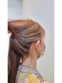 脱白髪染めハイライトをするときに均一に筋を作る。案外と違和感があるように見えてしまうことも。あえてランダムに入れてあげることで、同じ間隔のハイライトでは出ないオシャレさのある仕上がりに。ブレンドするように入れているので強すぎないのもいい所。